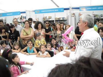 Mago: Hace bastantes años ya, mi hija menor llegó de un cumpleaños de una amiguita y me dijo: “Mamá, en el cumpleaños había un mago para niños que me encantó!!”. Me contó como fué su actuación y le encantó lo divertido que fue ese mago. Ella hoy es actriz y cantante de jazz, por lo tanto desde siempre distinguió la calidad de un espectáculo. Recuerdo que al escuchar su comentario me dije: “! Este es el mago que ando buscando!”…lo contacté y lo cité a un show sin conocerlo. El resultado fue que quedé tan encantada que trabajé con el por muchos años. Me encantó su visión de lo que es un espectáculo dirigido a los niños, su encanto y magnetismo con los niños ya que los hace entrar en su mundo y disfrutar de sus trucos y de su humor.Un saludo cariñoso para el mago Jimmy y que sigas alegrando a chicos y grandes en sus Show para Niños.Mª Pastora Campos Tía Pucherito Las Condes